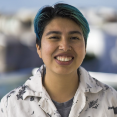 Kitzia Esteva is a Mexican migrant, gender non-binary, DACAmented fiction writer and poet. They are a social justice organizer engaging in cultural work as imperative to sustaining and evolving social justice movements. They use storytelling as a place to shift narratives about queer/ trans, Indigenous, Black, migrant, and disabled people. Their documentary fiction contributes to our collective imagination of utopia and liberation while honoring the dignity, brilliance, and magic in marginalized communities. Two of their non-fiction essays published in the former Black Girl Dangerous online journal. Their first short story, Mixe’s Feather, was recently published in the Acentos Review.